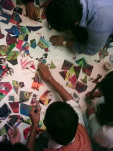 The workshop is an attempt to encourage the use of elements of colour, form, pattern, structure and construction in a creative way to explore the relationship between design/graphics and Indian art traditions.