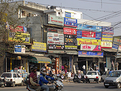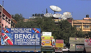 the signs in the street are painted by hand. English or Hindi (Bengali
